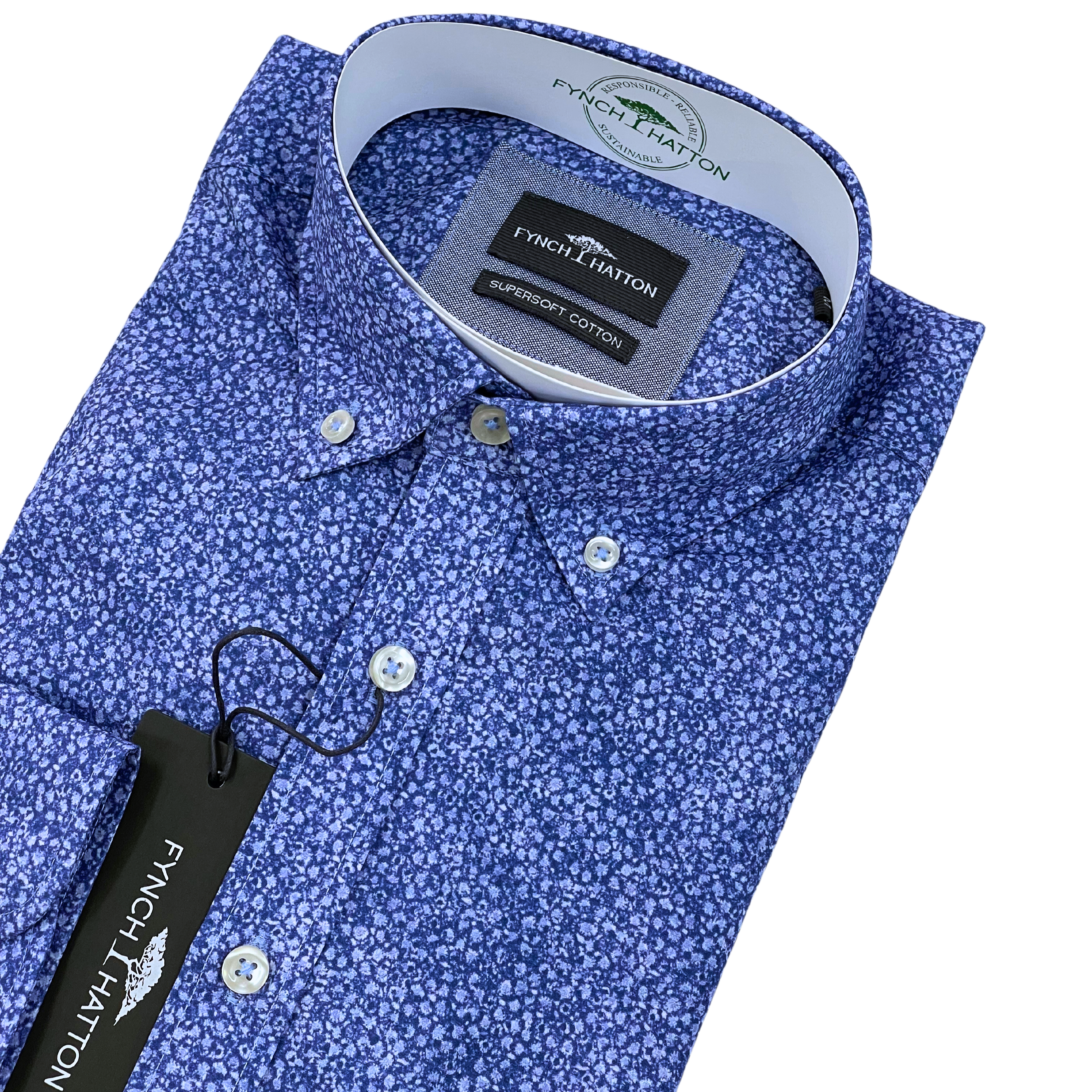 Fynch-Hatton kauluspaita sininen kukkaprintti "Supersoft Cotton"