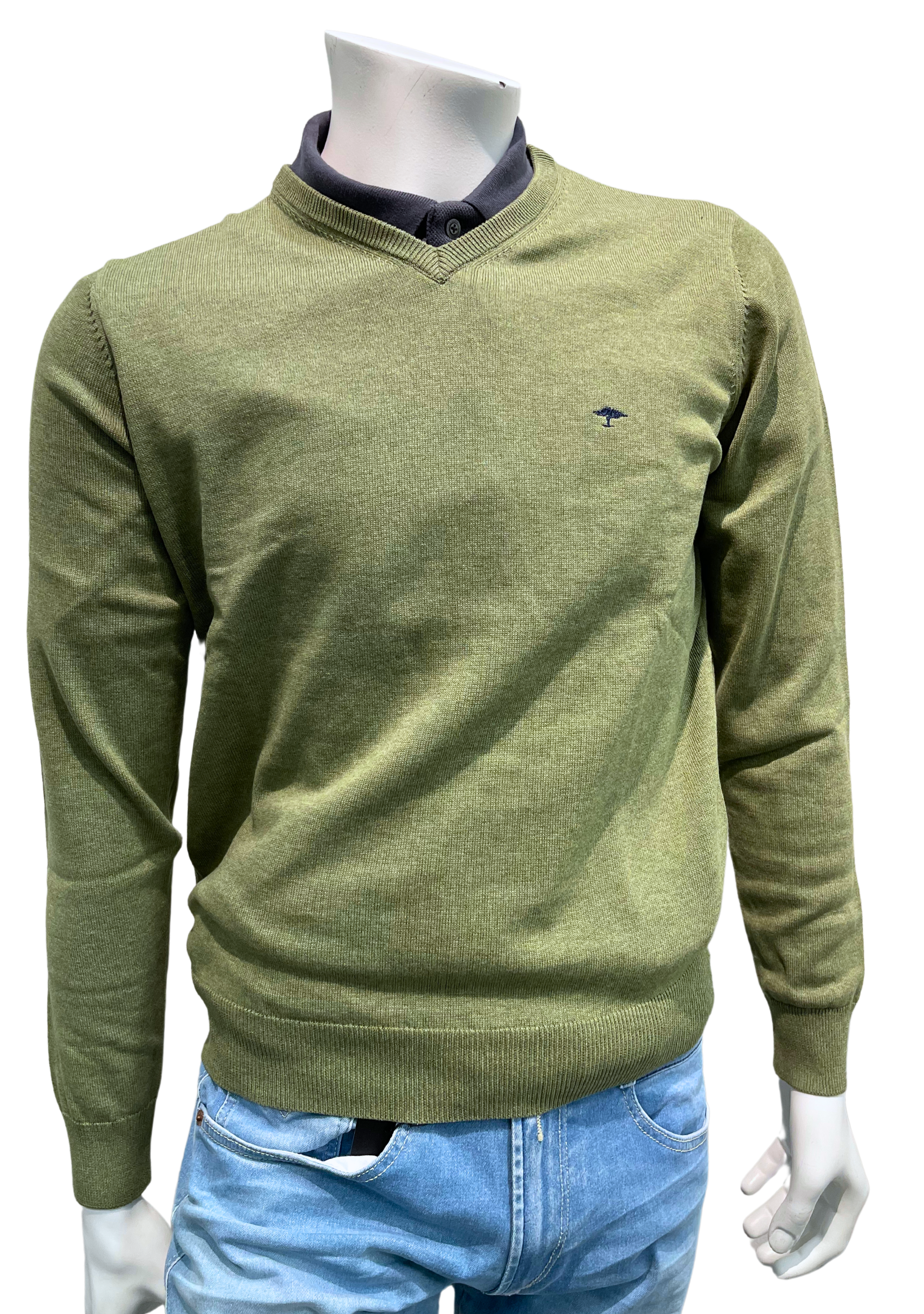 Fynch-Hatton puuvillaneule v-aukolla vihreä "Superfine 3-ply Cotton"